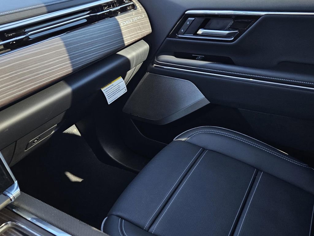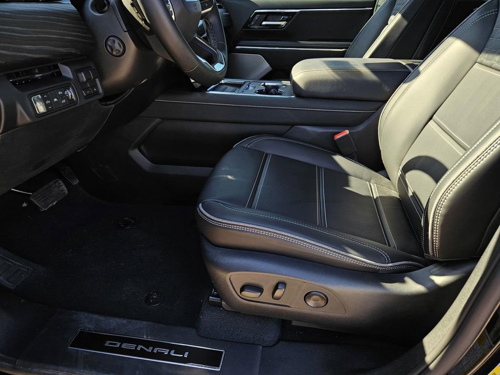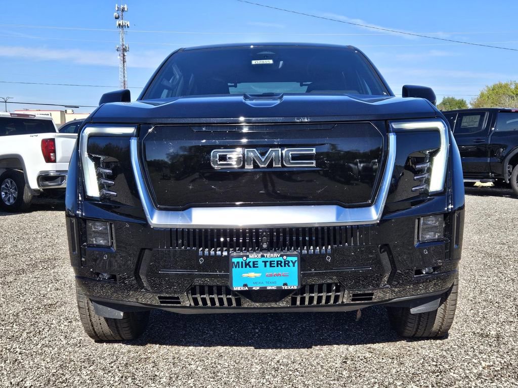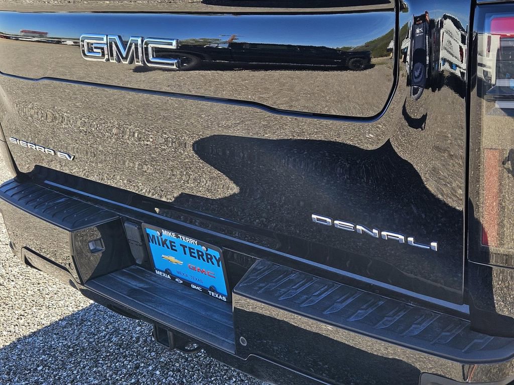 Sierra EV Denali, 4D Crew Cab, Electric, 1-Speed Automatic, AWD, Onyx Black, After Dark (Black) Premium Synthetic, 11.63 Axle Ratio, 4-Wheel Disc Brakes, 7 Speakers, 8-Way Power Driver Seat w/4-Way Power Lumbar, 8-Way Power Passenger Seat w/4-Way Power Lumbar, ABS brakes, Adaptive suspension, Air Conditioning, Alloy wheels, AM/FM radio: SiriusXM with 360L, Auto High-beam Headlights, Auto-dimming Rear-View mirror, Auto-leveling suspension, Automatic temperature control, Brake assist, Delay-off headlights, Driver & Front Passenger Ventilated Seats, Driver door bin, Driver vanity mirror, Dual front impact airbags, Dual front side impact airbags, Dual Level Charge Cord, Electronic Stability Control, Emergency communication system: OnStar, Four wheel independent suspension, Front & Rear Adaptive Air Ride Suspension, Front anti-roll bar, Front Bucket Seats, Front Bucket Seats w/Center Console, Front Center Armrest w/Storage, Front dual zone A/C, Front fog lights, Front License Plate Kit, Front reading lights, Fully automatic headlights, Garage door transmitter, Genuine wood console insert, Genuine wood dashboard insert, Heads-Up Display, Heated door mirrors, Heated Front Driver & Passenger Seats, Heated front seats, Heated rear seats, Heated steering wheel, Low tire pressure warning, Memory seat, Navigation System, Occupant sensing airbag, Outside temperature display, Overhead airbag, Overhead console, Panic alarm, Passenger door bin, Passenger vanity mirror, Power door mirrors, Power driver seat, Power passenger seat, Power steering, Power windows, Premium 7-Speaker Bose Sound System, Premium audio system: Premium GMC Infotainment System, Premium Leather Alternative Seating Surfaces, Radio data system, Radio: 16.8 Diagonal Premium GMC Infotainment Sys, Rain sensing wipers, Rear fog lights, Rear reading lights, Rear seat center armrest, Rear step bumper, Rear window defroster, Remote keyless entry, Security system, SiriusXM w/360L Trial Subscription, Speed control, Speed-sensing steering, Split folding rear seat, Sport steering wheel, Steering wheel memory, Steering wheel mounted audio controls, Telescoping steering wheel, Tilt steering wheel, Traction control, Trip computer, Variably intermittent wipers, Ventilated front seats, and Wheels: 24 x 9.0 Aluminum.