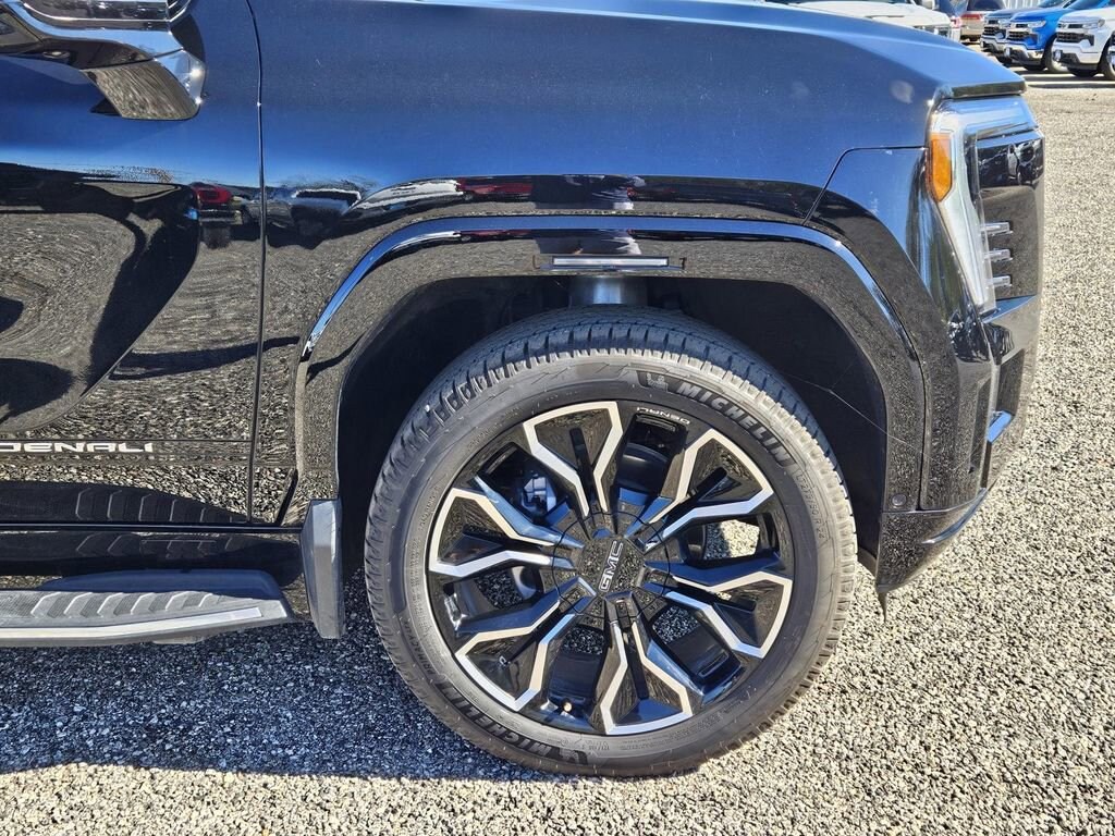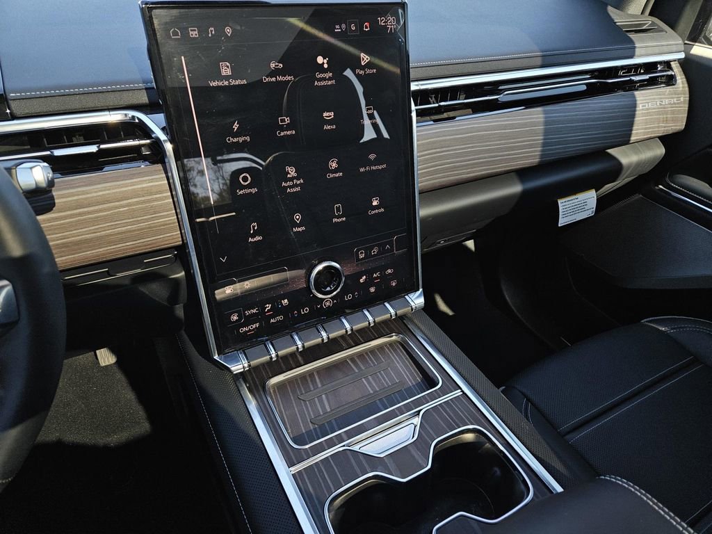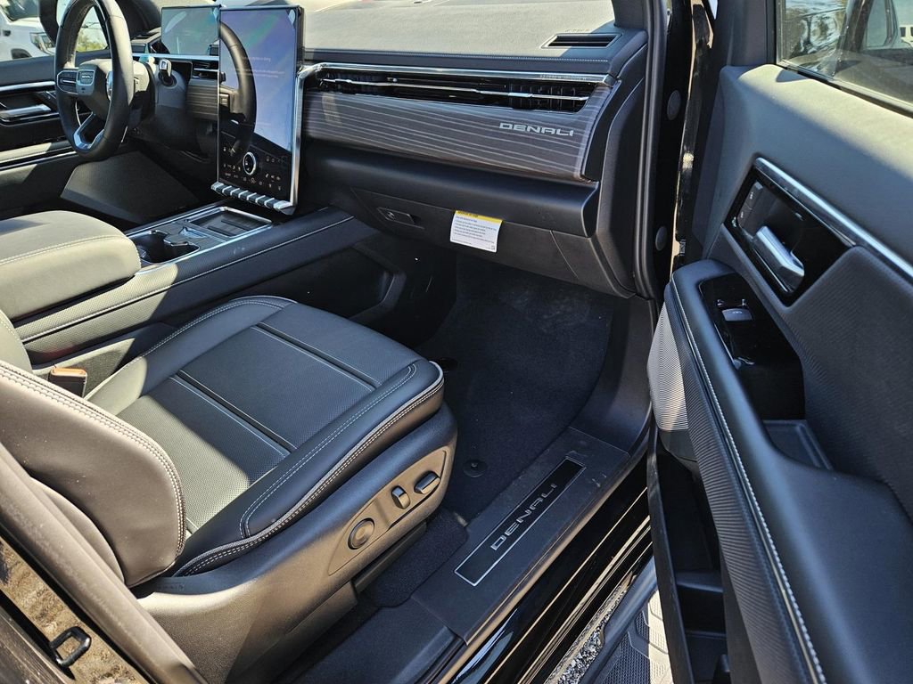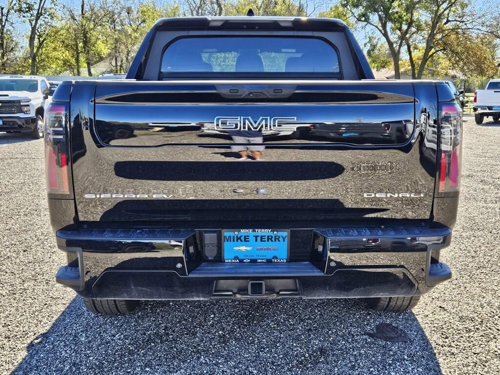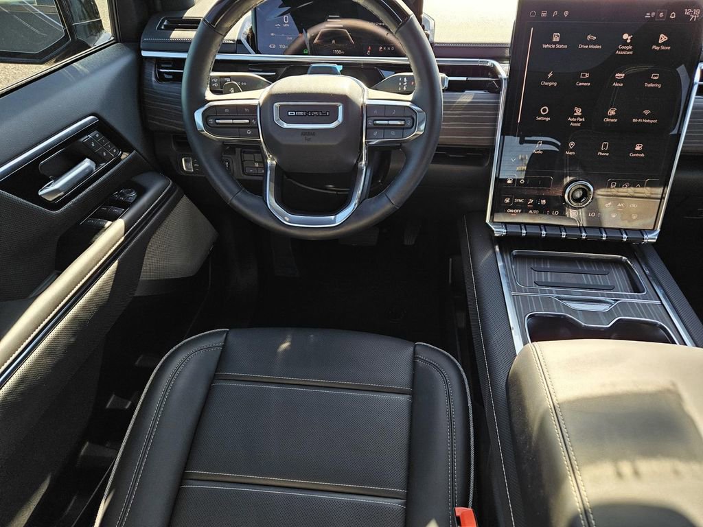 Sierra EV Denali, 4D Crew Cab, Electric, 1-Speed Automatic, AWD, Onyx Black, After Dark (Black) Premium Synthetic, 11.63 Axle Ratio, 4-Wheel Disc Brakes, 7 Speakers, 8-Way Power Driver Seat w/4-Way Power Lumbar, 8-Way Power Passenger Seat w/4-Way Power Lumbar, ABS brakes, Adaptive suspension, Air Conditioning, Alloy wheels, AM/FM radio: SiriusXM with 360L, Auto High-beam Headlights, Auto-dimming Rear-View mirror, Auto-leveling suspension, Automatic temperature control, Brake assist, Delay-off headlights, Driver & Front Passenger Ventilated Seats, Driver door bin, Driver vanity mirror, Dual front impact airbags, Dual front side impact airbags, Dual Level Charge Cord, Electronic Stability Control, Emergency communication system: OnStar, Four wheel independent suspension, Front & Rear Adaptive Air Ride Suspension, Front anti-roll bar, Front Bucket Seats, Front Bucket Seats w/Center Console, Front Center Armrest w/Storage, Front dual zone A/C, Front fog lights, Front License Plate Kit, Front reading lights, Fully automatic headlights, Garage door transmitter, Genuine wood console insert, Genuine wood dashboard insert, Heads-Up Display, Heated door mirrors, Heated Front Driver & Passenger Seats, Heated front seats, Heated rear seats, Heated steering wheel, Low tire pressure warning, Memory seat, Navigation System, Occupant sensing airbag, Outside temperature display, Overhead airbag, Overhead console, Panic alarm, Passenger door bin, Passenger vanity mirror, Power door mirrors, Power driver seat, Power passenger seat, Power steering, Power windows, Premium 7-Speaker Bose Sound System, Premium audio system: Premium GMC Infotainment System, Premium Leather Alternative Seating Surfaces, Radio data system, Radio: 16.8 Diagonal Premium GMC Infotainment Sys, Rain sensing wipers, Rear fog lights, Rear reading lights, Rear seat center armrest, Rear step bumper, Rear window defroster, Remote keyless entry, Security system, SiriusXM w/360L Trial Subscription, Speed control, Speed-sensing steering, Split folding rear seat, Sport steering wheel, Steering wheel memory, Steering wheel mounted audio controls, Telescoping steering wheel, Tilt steering wheel, Traction control, Trip computer, Variably intermittent wipers, Ventilated front seats, and Wheels: 24 x 9.0 Aluminum.