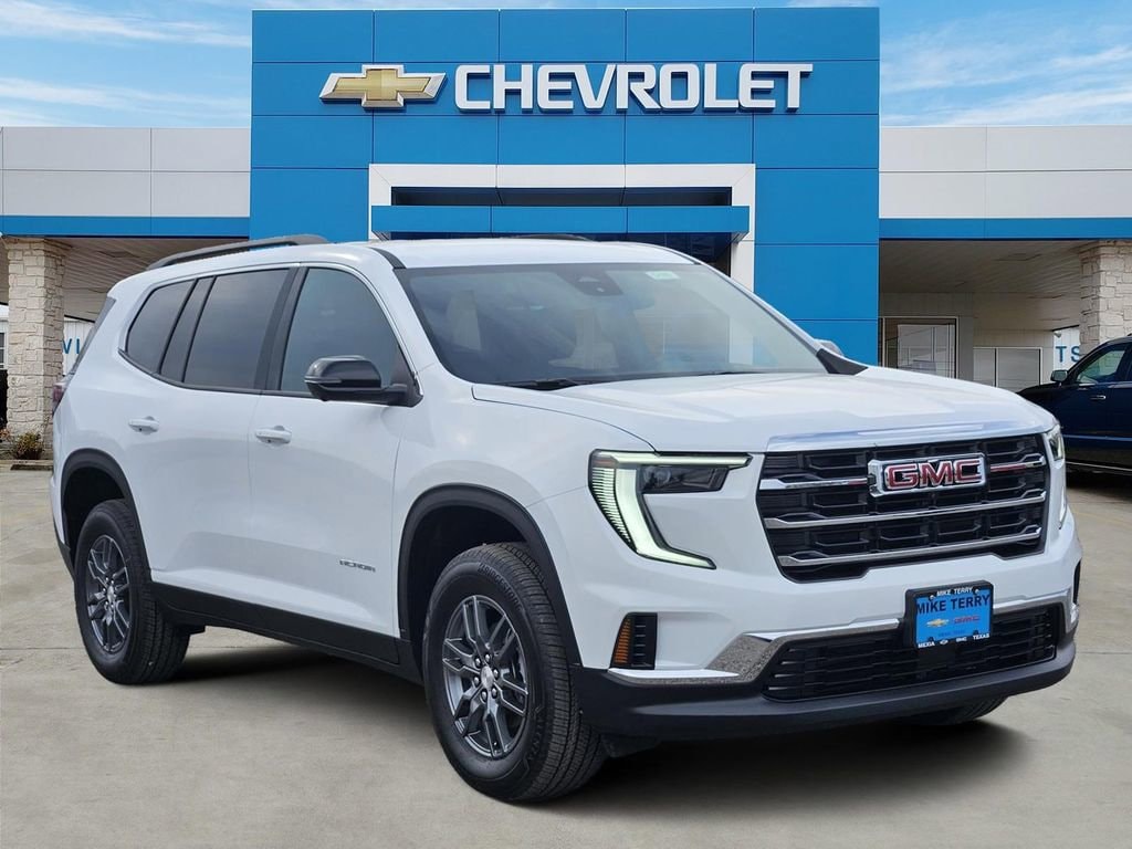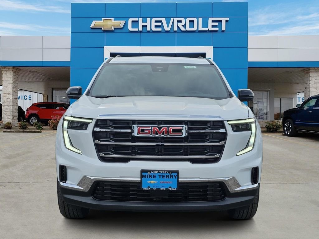 Acadia Elevation, 4D Sport Utility, 2.5L DOHC, 8-Speed Automatic, FWD, Summit White, After Dk Clth Cloth, 12 Speakers, 18 x 7.5 Aluminum Wheels, 3.49 Final Drive Axle Ratio, 3rd row seats: split-bench, 4-Way Manual Front Passenger Seat Adjuster, 4-Wheel Disc Brakes, 8-Passenger Seating (2-3-3 Seating Configuration), 8-Way Power Driver Seat Adjuster, ABS brakes, Air Conditioning, Alloy wheels, AM/FM radio: SiriusXM with 360L, Apple CarPlay/Android Auto, Auto High-beam Headlights, Automatic temperature control, Bodyside moldings, Bose Premium 12-Speaker System with Sub-Woofer, Brake assist, Bumpers: body-color, Cloth Seat Trim, Compass, Delay-off headlights, Driver 2-Way Power Lumbar Seat Adjuster, Driver door bin, Driver vanity mirror, Dual front impact airbags, Dual front side impact airbags, Electronic Stability Control, Emergency communication system: OnStar Services capable, Exterior Parking Camera Rear, Four wheel independent suspension, Front anti-roll bar, Front Bucket Seats, Front Center Armrest, Front dual zone A/C, Front fog lights, Front reading lights, Fully automatic headlights, Heated door mirrors, Heated Driver and Front Passenger Seats, Heated front seats, Heated steering wheel, Illuminated entry, Leather steering wheel, Low tire pressure warning, Navigation System, Occupant sensing airbag, Outside temperature display, Overhead airbag, Overhead console, Panic alarm, Passenger door bin, Passenger vanity mirror, Power door mirrors, Power driver seat, Power Liftgate, Power steering, Power windows, Radio data system, Radio: 15 Diagonal Premium GMC Infotainment System, Rear air conditioning, Rear anti-roll bar, Rear reading lights, Rear seat center armrest, Rear side impact airbag, Rear window defroster, Rear window wiper, Remote keyless entry, Security system, SiriusXM with 360L, Speed control, Speed-sensing steering, Split folding rear seat, Spoiler, Sport steering wheel, Steering wheel mounted audio controls, Tachometer, Telescoping steering wheel, Tilt steering wheel, Traction control, Trip computer, Turn signal indicator mirrors, Variably intermittent wipers, and Voltmeter.