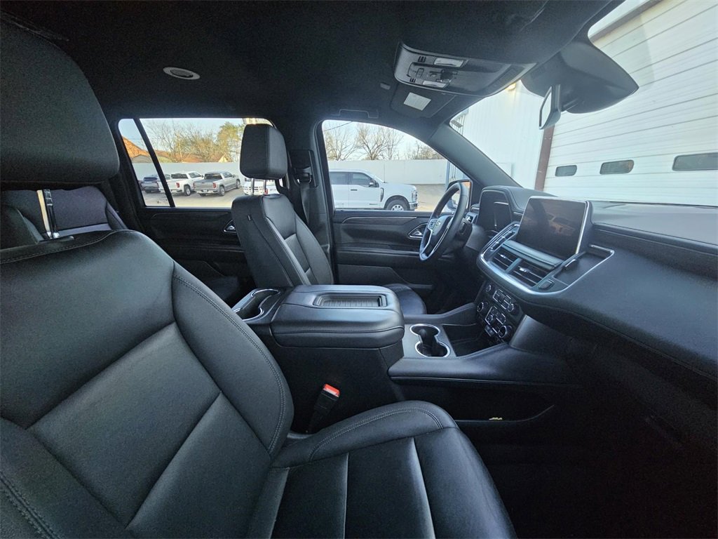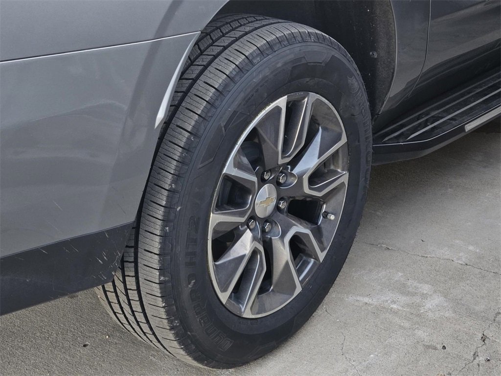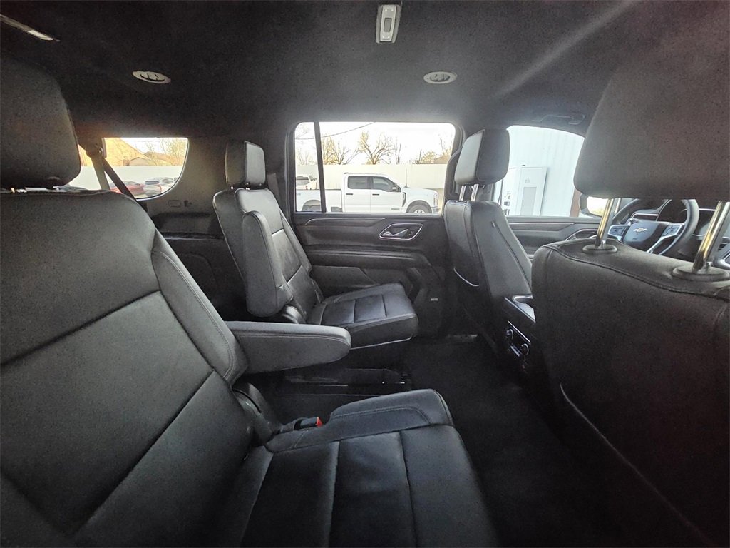 Driver Alert Package (Lane Change Alert w/Side Blind Zone Alert and Rear Cross Traffic Alert), License Plate Front Mounting Package, Luxury Package (2nd Row Pwr Release 60/40 Split-Folding Bench Seat, 3rd Row 60/40 Power-Folding Split-Bench, HD Surround Vision, Heated 2nd Row Outboard Seats, Heated Steering Wheel, Memory Settings, Outside Heated Power-Adjustable Mirrors, Power Tilt & Telescopic Steering Column, and Rear Pedestrian Alert), Preferred Equipment Group 1LT (10-Way Power Driver & Passenger Seat Adjusters, 1st & 2nd Row Color-Keyed Carpeted Floor Mats, Auto-Dimming Inside Rear-View Mirror, Bose 9-Speaker Stereo Audio System Feature, Bright Front & Rear Door Sill Plates, Color-Keyed Carpeting Floor Covering, Driver & Front Outboard Passenger Airbags, Enhanced Driver Information Center, Floor Console w/Storage Area, Hands-Free Rear Power Programmable Liftgate, Heated Driver & Front Passenger Seats, Infotainment Display, LED Daytime Running Lamps, Memory Settings For Driver, Remote Start, SiriusXM Radio w/360L, Universal Home Remote, Wireless Charging, and Wrapped Steering Wheel), Texas Edition (Texas Edition Badging), 3.23 Rear Axle Ratio, 3rd row seats: split-bench, 4-Wheel Disc Brakes, 9 Speakers, ABS brakes, Air Conditioning, Alloy wheels, AM/FM radio: SiriusXM with 360L, Apple CarPlay/Android Auto, Auto High-beam Headlights, Auto-dimming Rear-View mirror, Automatic temperature control, Brake assist, Bumpers: body-color, Compass, Delay-off headlights, Driver door bin, Driver vanity mirror, Dual front impact airbags, Dual front side impact airbags, Electronic Stability Control, Emergency communication system: OnStar and Chevrolet connected services capable, Four wheel independent suspension, Front anti-roll bar, Front Bucket Seats, Front Center Armrest, Front dual zone A/C, Front reading lights, Fully automatic headlights, Garage door transmitter, Heated door mirrors, Heated front seats, Illuminated entry, Leather-Appointed Seating, Low tire pressure warning, Memory seat, Navigation System, Occupant sensing airbag, Outside temperature display, Overhead airbag, Overhead console, Panic alarm, Passenger door bin, Passenger vanity mirror, Power door mirrors, Power driver seat, Power Liftgate, Power passenger seat, Power Release 2nd Row Bucket Seats, Power steering, Power windows, Premium audio system: Chevrolet Infotainment 3 Premium, Premium Smooth Ride Suspension, Radio: Chevrolet Infotainment 3 Premium System, Rain sensing wipers, Rear air conditioning, Rear anti-roll bar, Rear reading lights, Rear seat center armrest, Rear window defroster, Rear window wiper, Remote keyless entry, Roof rack: rails only, Security system, Speed control, Speed-sensing steering, Split folding rear seat, Spoiler, Steering wheel mounted audio controls, Tachometer, Telescoping steering wheel, Tilt steering wheel, Traction control, Trip computer, Variably intermittent wipers, Voltmeter, Wheels: 18 x 8.5 Bright Silver Painted Aluminum, and Wheels: 20 x 9 Painted Aluminum.