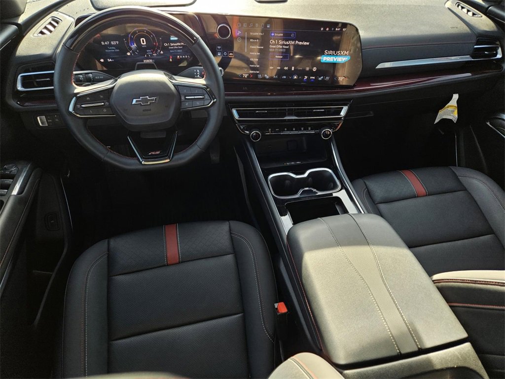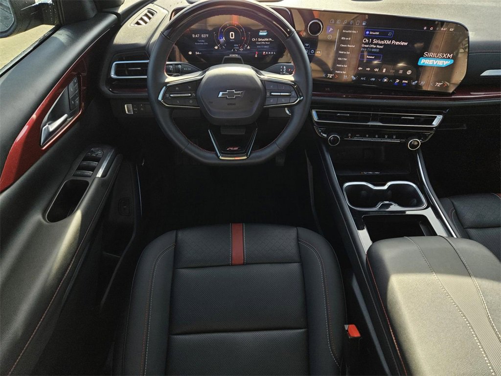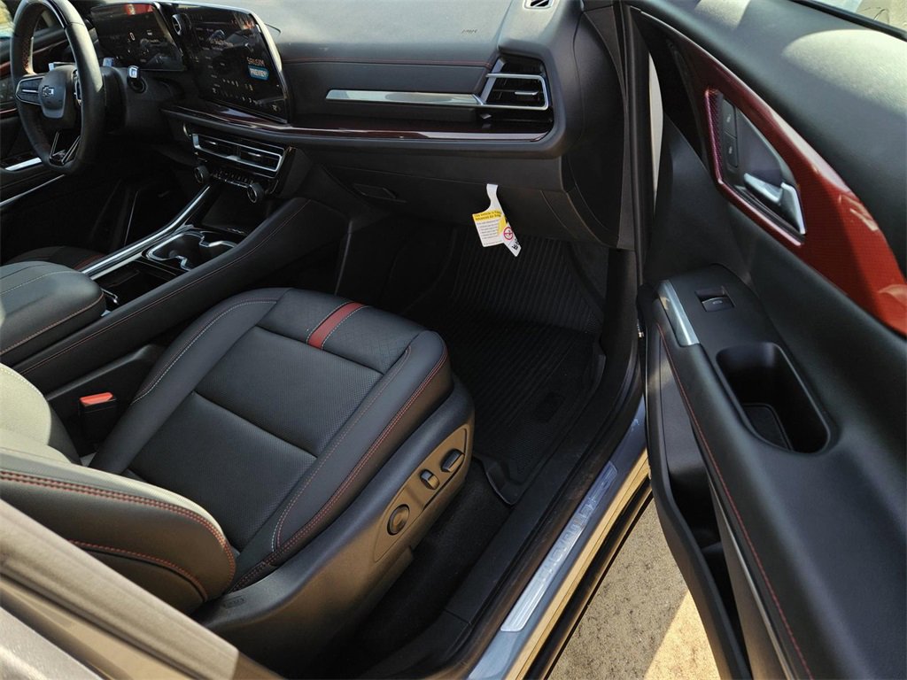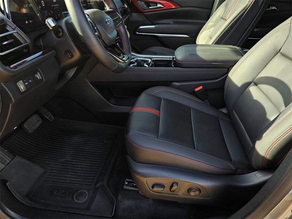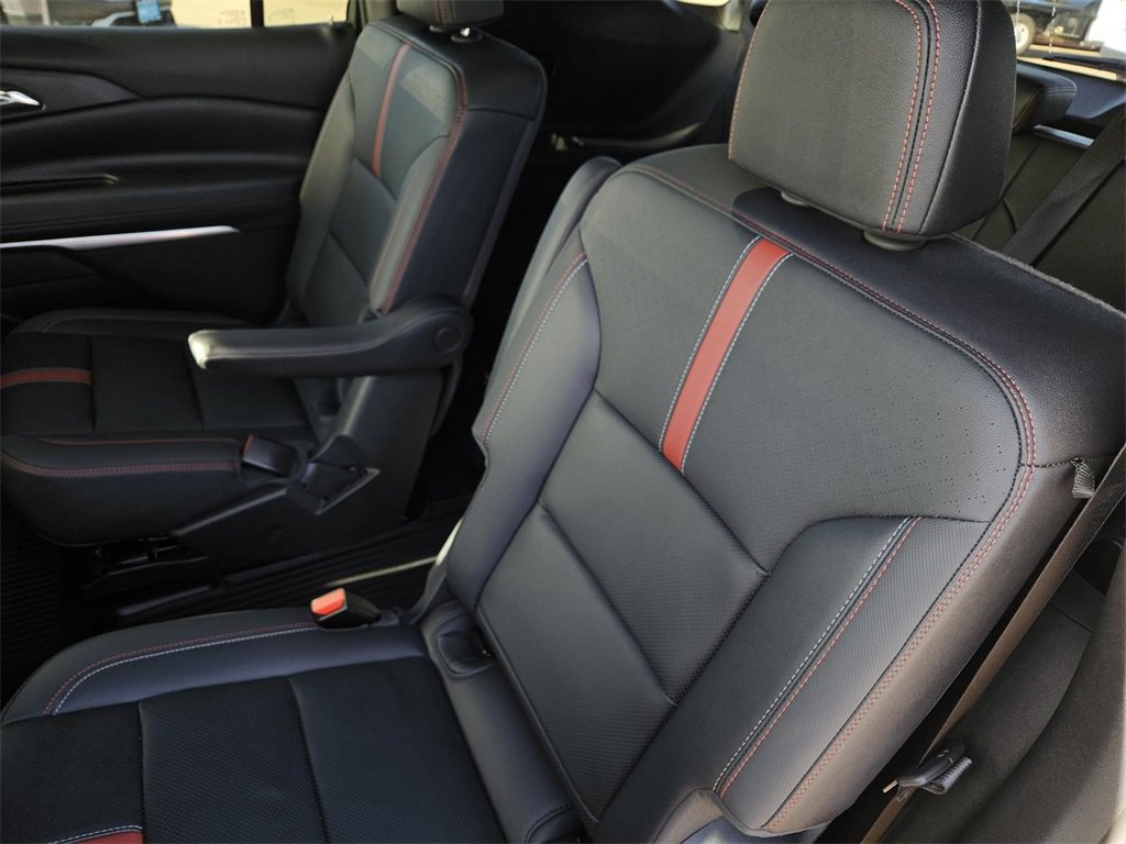 Preferred Equipment Group 1RS, Traverse RS, 4D Sport Utility, 2.5L DOHC, 8-Speed Automatic, FWD, Sterling Gray Metallic, Jet Black With Torch Red Accents Leather, 10 Speakers, 3rd row seats: split-bench, 4-Wheel Disc Brakes, 6-Way Power Front Passenger Seat Adjuster, 8-Way Power Driver Seat Adjuster, ABS brakes, Air Conditioning, Alloy wheels, AM/FM radio: SiriusXM with 360L, Apple CarPlay/Android Auto, Auto High-beam Headlights, Auto-dimming door mirrors, Automatic temperature control, Bose Premium 10-Speaker Audio System Feature, Brake assist, Bumpers: body-color, Compass, Delay-off headlights, Driver 4-Way Power Lumbar Seat Adjuster, Driver door bin, Driver vanity mirror, Dual front impact airbags, Dual front side impact airbags, Electronic Stability Control, Emergency communication system, Exterior Parking Camera Rear, Four wheel independent suspension, Front anti-roll bar, Front Bucket Seats, Front Center Armrest, Front dual zone A/C, Front Passenger 4-Way Power Lumbar Seat Adjuster, Front reading lights, Fully automatic headlights, Heated door mirrors, Heated front seats, Heated rear seats, Heated steering wheel, Illuminated entry, Low tire pressure warning, Navigation System, Not Equipped w/Heated Wiper Park, Occupant sensing airbag, Outside temperature display, Overhead airbag, Overhead console, Panic alarm, Passenger door bin, Passenger vanity mirror, Perforated Leather-Appointed Seat Trim, Power door mirrors, Power driver seat, Power Liftgate, Power moonroof, Power passenger seat, Power steering, Power windows, Radio data system, Radio: 17.7 Diagonal Display, Rain sensing wipers, Rear air conditioning, Rear anti-roll bar, Rear reading lights, Rear window defroster, Rear window wiper, Remote keyless entry, Security system, SiriusXM w/360L, Speed control, Speed-sensing steering, Spoiler, Sport steering wheel, Steering wheel mounted audio controls, Tachometer, TBD Axle Ratio, Telescoping steering wheel, Tilt steering wheel, Traction control, Trip computer, Turn signal indicator mirrors, Variably intermittent wipers, Ventilated front seats, Voltmeter, and Wheels: 22 High Gloss Black Painted Aluminum.