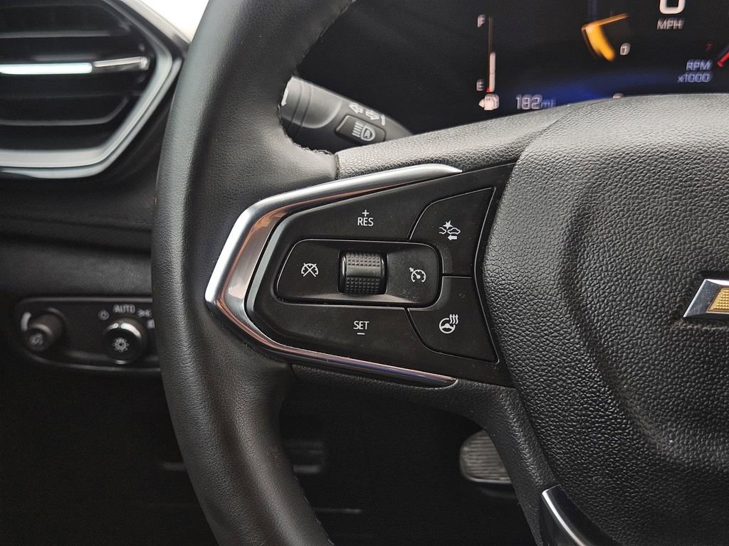 Convenience Package (1 Type-An and 1 Type-C USB Charging-Only Ports, 120-Volt Power Outlet, 2-Way Power Driver Lumbar Seat Adjuster, 8-Way Power Driver Seat Adjuster, Cabin Humidity Sensor, Driver and Front Passenger Illuminated Vanity Mirrors, Inside Rear-View Auto-Dimming Mirror, Power Liftgate, Rear Center Armrest, Single-Zone Automatic Climate Control, and Wireless Charging), Driver Confidence Package (Lane Change Alert with Side Blind Zone Alert, Rear Cross Traffic Alert, and Rear Park Assist), LT Cold Weather Package (Heated Driver and Front Passenger Seats, Heated Steering Wheel, Satin Silver and Chrome Wrapped Shift Knob, and Wrapped Steering Wheel), Preferred Equipment Group 1LT, 1 Type-An and 1 Type-C USB Ports, 4-Way Manual Front Passenger Seat Adjuster, 4-Wheel Disc Brakes, 5.45 Final Drive Axle Ratio, 6 Speakers, 6-Speaker Audio System Feature, 6-Way Manual Driver Seat Adjuster, ABS brakes, Air Conditioning, Alloy wheels, AM/FM radio: SiriusXM, Auto High-beam Headlights, Brake assist, Bumpers: body-color, Cloth Seat Trim, Compass, Delay-off headlights, Driver door bin, Driver vanity mirror, Dual front impact airbags, Dual front side impact airbags, Electronic Stability Control, Emergency communication system: OnStar and Chevrolet connected services capable, Exterior Parking Camera Rear, Flat-Folding Front Passenger Seatback, Front anti-roll bar, Front Bucket Seats, Front Center Armrest, Front License Plate Bracket, Front reading lights, Front wheel independent suspension, Fully automatic headlights, Heated door mirrors, Illuminated entry, Knee airbag, Low tire pressure warning, Occupant sensing airbag, Overhead airbag, Overhead console, Panic alarm, Passenger door bin, Passenger vanity mirror, Power door mirrors, Power steering, Power windows, Radio data system, Radio: AM/FM Stereo Audio System, Rear side impact airbag, Rear window defroster, Rear window wiper, Reinforced Electric Heater/Defroster System, Remote keyless entry, Ride and Handling Suspension, Security system, SiriusXM Trial Subscription, Speed control, Split folding rear seat, Spoiler, Steering wheel mounted audio controls, Tachometer, Telescoping steering wheel, Tilt steering wheel, Traction control, Trip computer, Variably intermittent wipers, Wheels: 17 High Gloss Black Machined Aluminum, and Wireless Apple CarPlay/Android Auto.