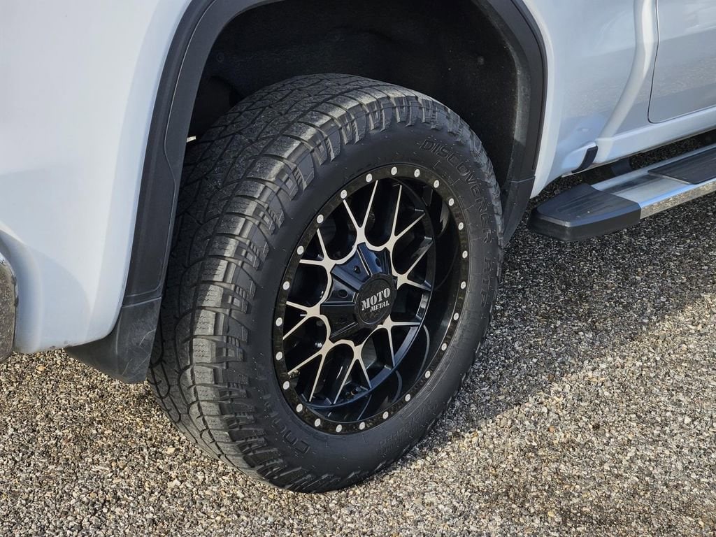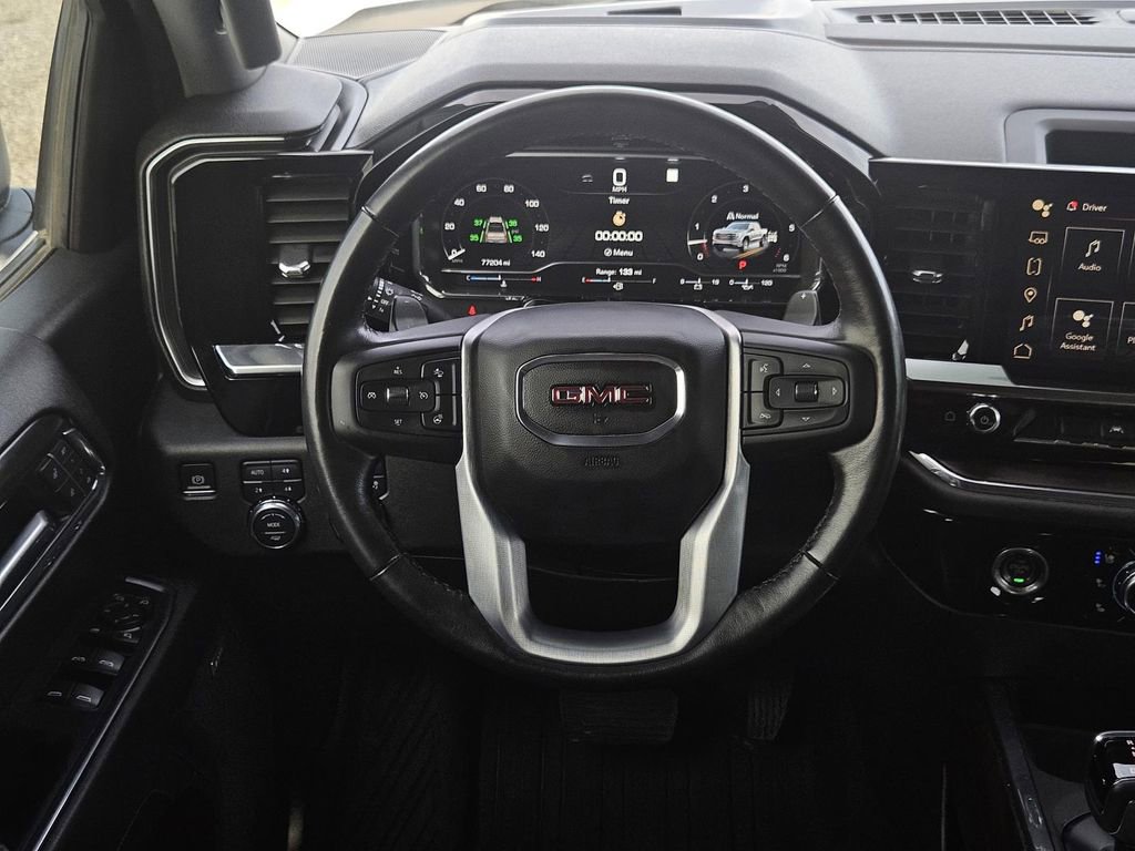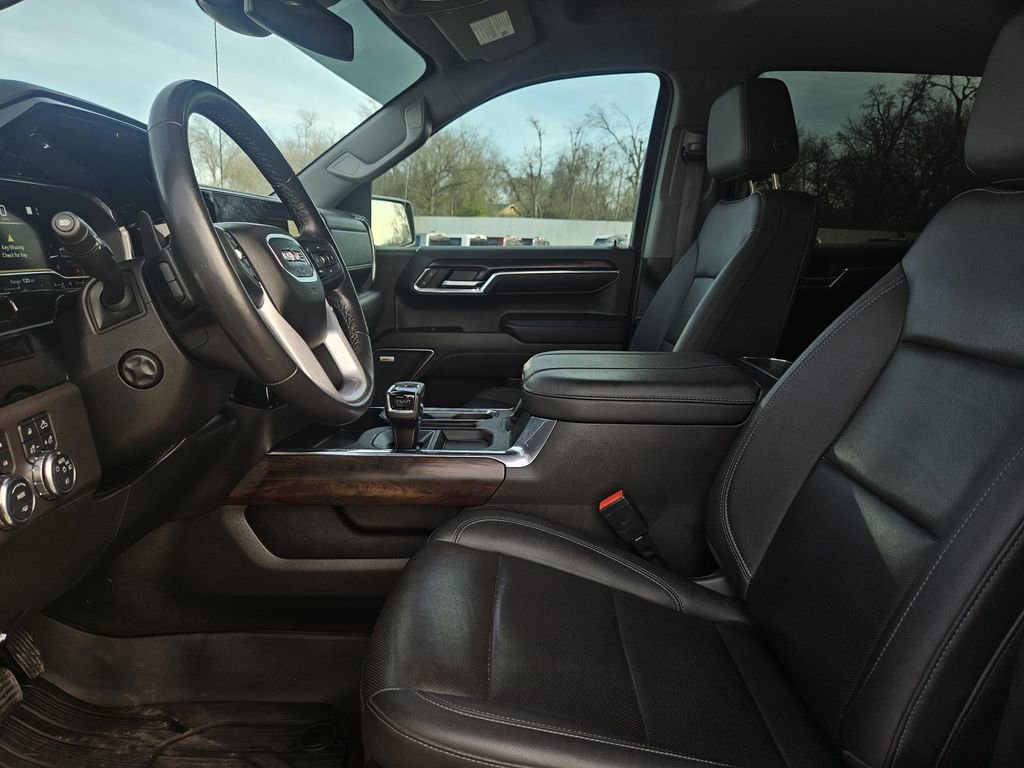 High Capacity Suspension Package, Preferred Equipment Group 4SA (120-Volt Bed Mounted Power Outlet, 120-Volt Instrument Panel Power Outlet, 170 Amp Alternator, 2 Charge/Data USB Ports, 2 Type-C Charge-Only Rear USB Ports, 6-Speaker Audio System Feature, Auto-Locking Rear Differential, Auxiliary External Transmission Oil Cooler, Chrome Header & Chrome Grille Insert Bars, Color-Keyed Carpeting Floor Covering, Compass, Deep-Tinted Glass, Electric Rear-Window Defogger, Electrical Steering Column Lock, Front Frame-Mounted Black Recovery Hooks, Front Rainsensing Wipers, GMC Connected Access Capable, HD Rear Vision Camera, Keyless Open & Start, LED Cargo Area Lighting, Manual Tilt-Wheel & Telescoping Steering Column, OnStar & GMC Connected Services Capable, Perimeter Lighting, Power Door Locks, Power Front Passenger Windows w/Express Up/Down, Power Front Windows w/Driver Express Up/Down, Power Rear Windows w/Express Down, Push Button Start, Rear Wheelhouse Liners, Remote Vehicle Starter System, SiriusXM w/360L, Steering Wheel Audio Controls, Theft Deterrent System (Unauthorized Entry), Wi-Fi Hotspot Capable, and Wireless Phone Projection), SLT Convenience Package (2 Charge/Data USB Ports Inside Center Console, Electronic Precision Shift, Floor-Mounted Center Console, Front Bucket Seats, Power Rake & Telescoping Steering Column, Premium Bose 7-Speaker Sound System, Ventilated Driver & Front Passenger Seats, and Wireless Charging), SLT Preferred Package (Adaptive Cruise Control, Heated 2nd Row Outboard Seats, Power Sliding Rear Window w/Rear Defogger, and Universal Home Remote), Standard Suspension Package, Texas Edition SLT Premium Package (20 Polished Aluminum Wheels, Chrome Wheel To Wheel Assist Steps, and Texas Edition Badging), Trailering Package (Hitch Guidance), X31 Off-Road & Protection Package (All-Weather Floor Liner (LPO) and Spray-On Pickup Bed Liner w/GMC Logo), X31 Off-Road Package (Dual Exhaust System, Heavy-Duty Air Filter, Hill Descent Control, Off-Road Suspension, and X31 Hard Badge), Sierra 1500 SLT, 4D Crew Cab, EcoTec3 5.3L V8, 4WD, Summit White, Black Leather, 10-Way Power Driver Seat Adjuster w/Lumbar, 10-Way Power Passenger Seat Adjuster w/Lumbar, 3.23 Rear Axle Ratio, 4-Wheel Disc Brakes, 6 Speakers, ABS brakes, Air Conditioning, Alloy wheels, AM/FM radio, Apple CarPlay/Android Auto, Auto High-beam Headlights, Auto-dimming door mirrors, Auto-dimming Rear-View mirror, Automatic Emergency Braking, Automatic temperature control, Brake assist, Buckle to Drive, Bumpers: chrome, Delay-off headlights, Driver door bin, Driver Memory, Driver vanity mirror, Dual front impact airbags, Dual front side impact airbags, Electronic Stability Control, Emergency communication system: OnStar and GMC connected services capable, Following Distance Indicator, Forward Collision Alert, Front 40/20/40 Split-Bench Seat, Front anti-roll bar, Front Center Armrest w/Storage, Front dual zone A/C, Front fog lights, Front License Plate Kit, Front Pedestrian Braking, Front reading lights, Front wheel independent suspension, Fully automatic headlights, Heated door mirrors, Heated Driver & Front Outboard Passenger Seating, Heated front seats, Heated steering wheel, Illuminated entry, IntelliBeam Automatic High Beam On/Off, Lane Keep Assist w/Lane Departure Warning, Low tire pressure warning, Memory seat, Navigation System, Not Equipped w/Steering Column Lock, Occupant sensing airbag, Outside temperature display, Overhead airbag, Overhead console, Panic alarm, Passenger door bin, Passenger vanity mirror, Perf Leather-Appointed Front Outboard Seat Trim, Power door mirrors, Power driver seat, Power passenger seat, Power steering, Power windows, Premium audio system: GMC Infotainment System, Radio data system, Radio: Premium GM