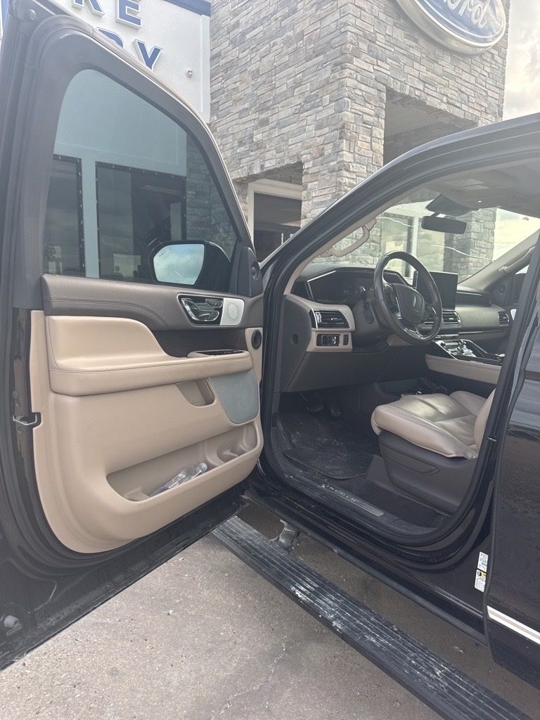 4WD, Sandstone Leather, 14 Speakers, 2nd Row Heated/Ventilated 40/Console/40 Seat, 3.73 Axle Ratio, 3rd row seats: split-bench, 4-Wheel Disc Brakes, ABS brakes, Adaptive suspension, Adjustable pedals, Air Conditioning, Alloy wheels, AM/FM radio: SiriusXM with 360L, Apple CarPlay/Android Auto, Audio memory, Auto High-beam Headlights, Auto Start-Stop Technology, Auto tilt-away steering wheel, Auto-dimming door mirrors, Auto-dimming Rear-View mirror, Auto-leveling suspension, Automatic temperature control, Bodyside moldings, Brake assist, Bumpers: body-color, Compass, Delay-off headlights, Driver door bin, Driver vanity mirror, Driver's Seat Mounted Armrest, Dual front impact airbags, Dual front side impact airbags, Electronic Stability Control, Emergency communication system: 911 Assist, Equipment Group 201A Reserve I, Exterior Parking Camera Rear, Four wheel independent suspension, Front anti-roll bar, Front Bucket Seats, Front dual zone A/C, Front fog lights, Front License Plate Bracket, Front reading lights, Fully automatic headlights, Garage door transmitter, Genuine wood dashboard insert, Genuine wood door panel insert, Head restraints memory, Heads-Up Display, Heated door mirrors, Heated front seats, Heated rear seats, Heated steering wheel, HVAC memory, Illuminated 1st & 2nd Row Seat Belts, Illuminated entry, Lane Departure Warning System, Leather steering wheel, Lincoln Lit Star in Grille, Low tire pressure warning, Luxury Package, Memory seat, Navigation system: Connected Navigation (1-year trial), Occupant sensing airbag, Outside temperature display, Overhead airbag, Overhead console, Panic alarm, Passenger door bin, Passenger seat mounted armrest, Passenger vanity mirror, Pedal memory, Perfect Position Seats (30-Way) w/Active Motion, Power adjustable rear head restraints, Power door mirrors, Power driver seat, Power Liftgate, Power moonroof: Panoramic Vista Roof, Power passenger seat, Power steering, Power windows, Prem Lthr Auto Htd/Ventiltd Perfect Position Seats, Radio data system, Radio: Revel Audio System w/Satelllite/AM/FM/HD, Radio: Revel Ultima 3D Audio System w/28 Speakers, Rain sensing wipers, Rear air conditioning, Rear anti-roll bar, Rear audio controls, Rear reading lights, Rear window defroster, Rear window wiper, Reclining 3rd row seat, Remote keyless entry, Security system, SiriusXM w/360L, Speed control, Speed-sensing steering, Speed-Sensitive Wipers, Split folding rear seat, Spoiler, Steering wheel memory, Steering wheel mounted audio controls, SYNC 4 Communications & Entertainment System, Tachometer, Telescoping steering wheel, Tilt steering wheel, Traction control, Trip computer, Turn signal indicator mirrors, Variably intermittent wipers, Ventilated front seats, Ventilated rear seats, Voice-Activated Touchscreen Navigation System, Wheels: 22" 12-Spoke Bright-Machined Aluminum, Wheels: 22" Bright Machined Aluminum, 4WD, Sandstone Leather.