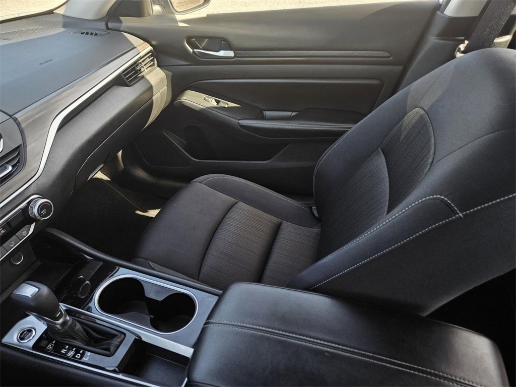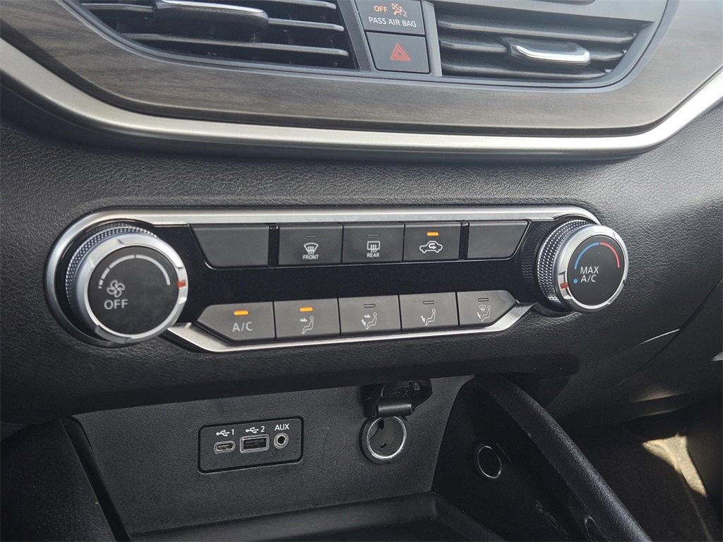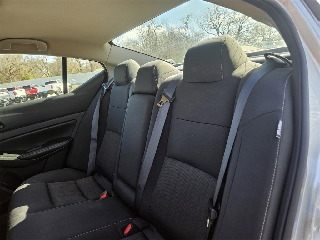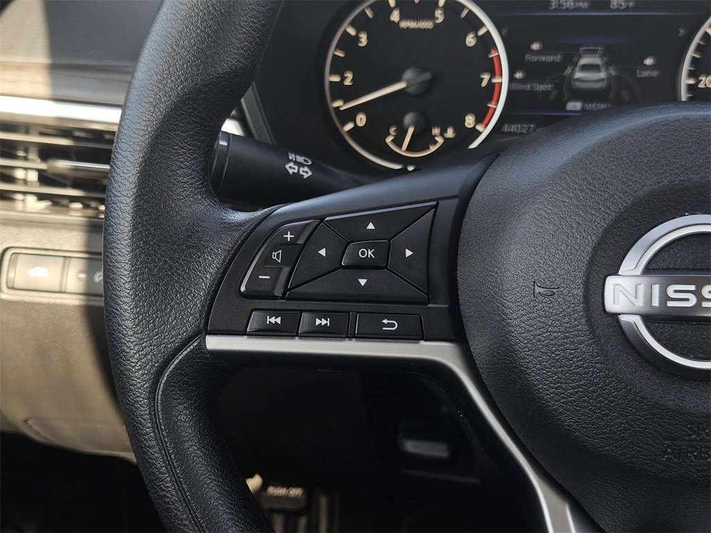 CVT with Xtronic, 17 Alloy Wheels, 4-Wheel Disc Brakes, 6 Speakers, ABS brakes, Air Conditioning, Alloy wheels, AM/FM radio: SiriusXM, Auto High-beam Headlights, Blind Spot Warning, Brake assist, Bumpers: body-color, Cloth Seat Trim, Delay-off headlights, Driver door bin, Driver vanity mirror, Dual front impact airbags, Dual front side impact airbags, Electronic Stability Control, Floor Mats/Trunk Mat/Hideaway Net, Four wheel independent suspension, Front anti-roll bar, Front Bucket Seats, Front Center Armrest, Front reading lights, Fully automatic headlights, Illuminated entry, Knee airbag, Low tire pressure warning, NissanConnect featuring Apple CarPlay, Occupant sensing airbag, Outside temperature display, Overhead airbag, Overhead console, Panic alarm, Passenger door bin, Passenger vanity mirror, Power door mirrors, Power driver seat, Power steering, Power windows, Radio data system, Radio: AM/FM Audio System, Rear anti-roll bar, Rear Parking Sensors, Rear reading lights, Rear seat center armrest, Rear side impact airbag, Rear window defroster, Remote keyless entry, Security system, Speed control, Speed-sensing steering, Speed-Sensitive Wipers, Split folding rear seat, Steering wheel mounted audio controls, Tachometer, Telescoping steering wheel, Tilt steering wheel, Traction control, Trip computer, and Variably intermittent wipers.