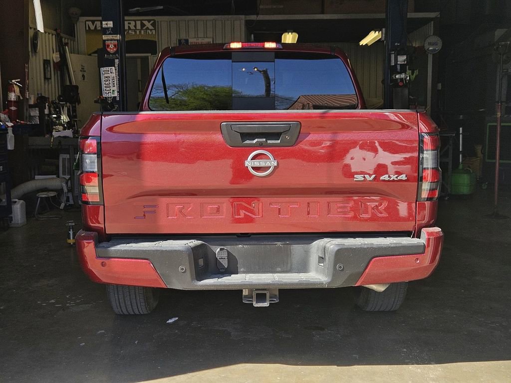 Recent Arrival! 4WD. Odometer is 13958 miles below market average!Cardinal Red Metallic Tricoat 2024 Nissan Frontier SV 3.8L DI DOHC 24V V6 9-Speed Automatic with Overdrive 4WDSV Convenience Package (120V Power Outlet in Bed, 120V Power Outlet in Rear Center Console, 17 Alloy Wheels, Front Halogen Fog Lights, Heated Front Seats, Heated Leather Steering Wheel, Heated Outside Mirrors, HVAC - Dual-Zone Front Auto A/C, I-Key w/Request Switches on O/S Handles, Illuminated Locking Glove Box, Leather Shift Lever, Overhead Console Storage (Sunglass Holder), Remote Engine Starter, Sliding Rear Window, Spray-In Bedliner, Tow/Haul Mode Switch, Trailer Hitch w/Wiring Harness, and Utili-Track System), Technology Package (High Beam Assist (HBA), Intelligent Cruise Control, Lane Departure Warning System, Rear Automatic Braking (RAB), Rear Cross Traffic Alert (RCTA), and Rear Sonar System), Tow Package (T11), 4WD, 16 Alloy Wheels, 3.692 Axle Ratio, 4-Wheel Disc Brakes, 6 Speakers, ABS brakes, Air Conditioning, Alloy wheels, AM/FM radio: SiriusXM, Anti-whiplash front head restraints, Apple CarPlay/Android Auto, Brake assist, Bumpers: body-color, Carpeted Floor Mats, Delay-off headlights, Driver door bin, Driver vanity mirror, Dual front impact airbags, Dual front side impact airbags, Electronic Stability Control, Electronic Tailgate Lock, Fender Premium Audio System w/10 Speakers, Front anti-roll bar, Front Bucket Seats, Front Center Armrest, Front reading lights, Front wheel independent suspension, Fully automatic headlights, Illuminated entry, Knee airbag, Low tire pressure warning, Occupant sensing airbag, Overhead airbag, Panic alarm, Passenger door bin, Passenger vanity mirror, Power door mirrors, Power driver seat, Power steering, Power windows, Premium Cloth Seat Trim, Radio data system, Radio: SXM/AM/FM/AUX/USB Audio System, Rear anti-roll bar, Rear seat center armrest, Rear side impact airbag, Rear step bumper, Remote keyless entry, Security system, Speed control, Speed-sensing steering, Splash Guards, Split folding rear seat, Steering wheel mounted audio controls, Tachometer, Tilt steering wheel, Traction control, Trip computer, Variably intermittent wipers, and Voltmeter.