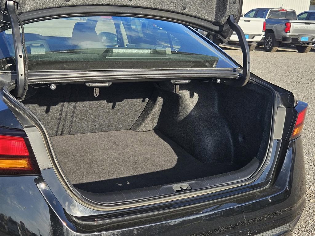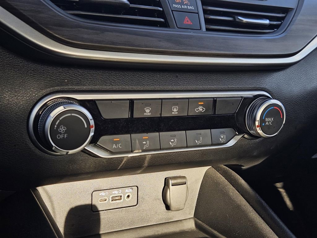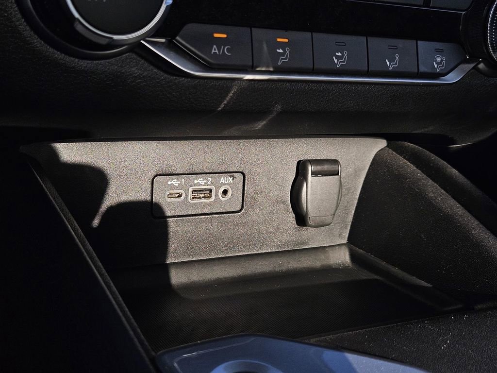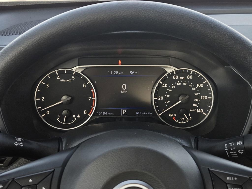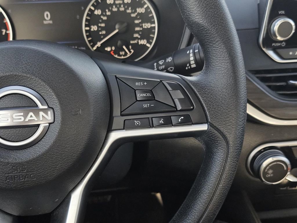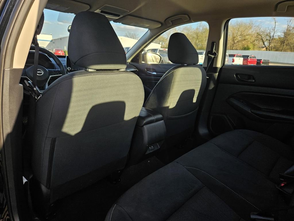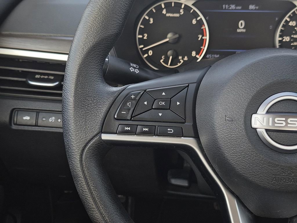 CVT with Xtronic, 17 Machined Alloy Wheels, 4-Wheel Disc Brakes, 6 Speakers, ABS brakes, Air Conditioning, Alloy wheels, AM/FM radio: SiriusXM, Auto High-beam Headlights, Blind Spot Warning, Brake assist, Bumpers: body-color, Cloth Seat Trim, Delay-off headlights, Driver door bin, Driver vanity mirror, Dual front impact airbags, Dual front side impact airbags, Electronic Stability Control, Floor Mats/Trunk Mat/Hideaway Net, Four wheel independent suspension, Front anti-roll bar, Front Bucket Seats, Front Center Armrest, Front reading lights, Fully automatic headlights, Illuminated entry, Knee airbag, Low tire pressure warning, NissanConnect featuring Apple CarPlay and Android Auto, Occupant sensing airbag, Outside temperature display, Overhead airbag, Overhead console, Panic alarm, Passenger door bin, Passenger vanity mirror, Power door mirrors, Power driver seat, Power steering, Power windows, Radio data system, Radio: AM/FM Audio System, Rear anti-roll bar, Rear Parking Sensors, Rear reading lights, Rear seat center armrest, Rear side impact airbag, Rear window defroster, Remote keyless entry, Security system, Speed control, Speed-sensing steering, Speed-Sensitive Wipers, Split folding rear seat, Steering wheel mounted audio controls, Tachometer, Telescoping steering wheel, Tilt steering wheel, Traction control, Trip computer, and Variably intermittent wipers.